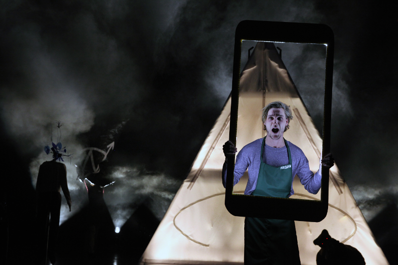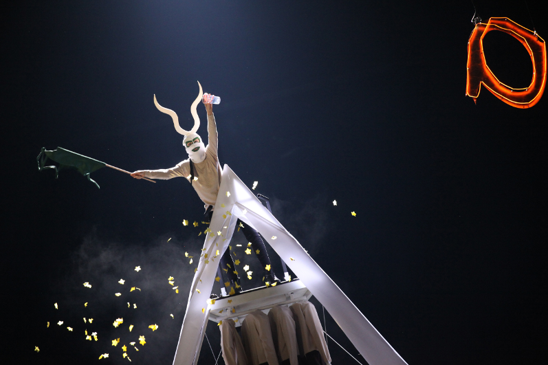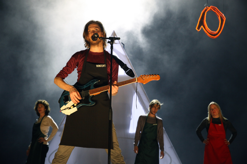 Not my Revolution, if…: Die Geschichten der Angie O. erzählt von einer fiktiven Aktivistin der globalen Antiglobalisierungsbewegung, die überall ihr Zelt aufschlägt, wo sich Protest regt: bei der intergalaktischen Konferenz gegen den Neoliberalismus, der Battle in Seattle oder bei Occupy Wall Street. Vom Fair Trade Coffee zum Protest gegen die Welthandelsorganisation und wieder zurück. Wie eine wiedergeborene Heilige Johanna der Schlachthöfe versucht sie die Welt zu überzeugen: „Service = Nächstenliebe, Dienst am Nächsten = Dienst am Kunden“. Was als Retrospektive von Protestformen begann, wurde mit Trumps Wahlsieg schlagartig aktuell: andcompany&Co. ziehen als friedlichste Armee der Welt hinein in die Schlacht, wo das Gewühl am größten ist und singen mit Macht. In Form eines Agit-Musicals werden die Widersprüche des neoliberalen Zeitalters ausgetragen, in der selbst Wohltätigkeit zum ökonomischen Faktor wird und Aktivismus zur innovativen Produktivkraft. Dagegen bilden deutsche und niederländische DarstellerInnen auf der Bühne eine Bezugsgruppe und fragen: Was tun? Was lassen? Wie setzt man den Körper ein, was setzt man sich aus? Es bleibt dabei: Es helfen nur Menschen, wo Menschen sind: MERRY CRISIS AND A HAPPY NEW FEAR!
