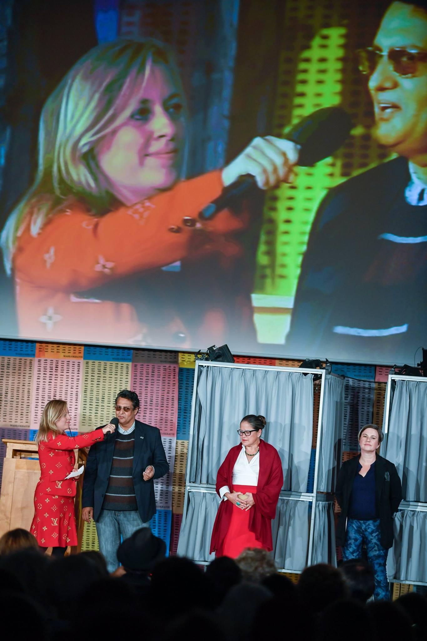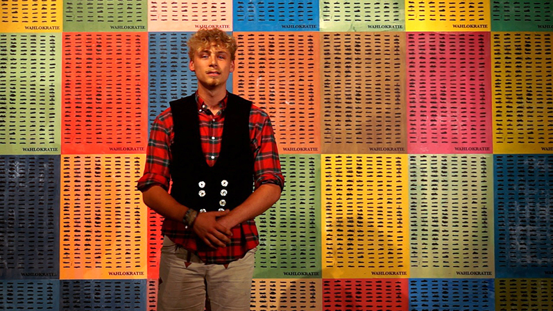 Immer mehr Menschen wissen nicht, wen sie wählen sollen – oder wollen gar nicht mehr wählen. Zugleich gibt es viele, die nicht wählen dürfen – und das nicht länger hinnehmen wollen. Andcompany&Co. ruft auf: Wähle nicht selbst! Wahlpat*in werden! – und verkuppelt Nicht-Wähler*innen mit Wahlwilligen, die nicht wählen dürfen. In Form einer Gameshow mit Bürgerbeteiligung, in der die Frage nach dem Zustand unserer Demokratie in einen breiten gesellschaftspolitischen und historischen Kontext gebettet wird. Ein „Experiment in indirekter Demokratie“, aufgeführt in der Dresdner Dreikönigskirche, zur Wendezeit der Ort der Verfassungsgebenden Versammlung.